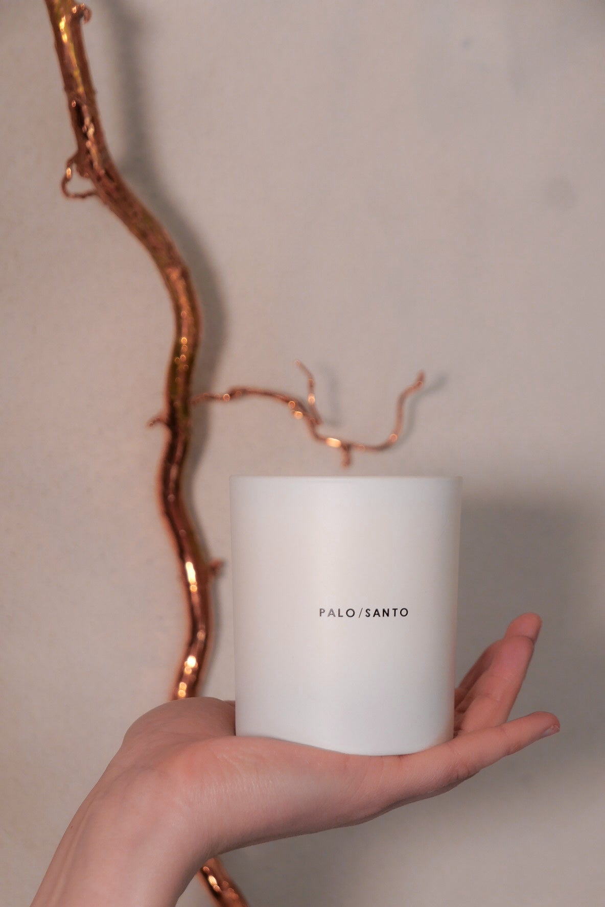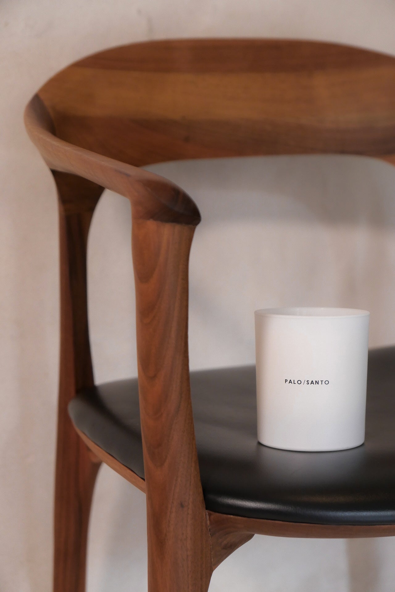 The act of burning begins a private ceremony of repose and renewal. Opening with an earthy warmth of oud and white musk, Palo/Santo grounds the mind and invigorates the senses. As it settles, flowery smoke of tonka bean matched with enigmatic ambergris and saffron envelops in a lasting and tender embrace of nature.